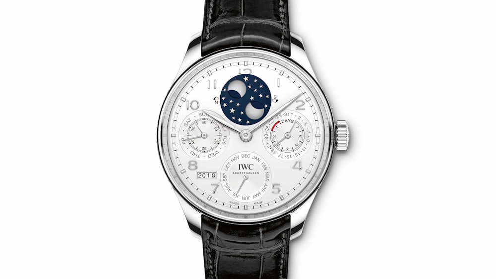 Today IWC is introducing a new platinum version of its perpetual calendar in the Portugieser line. From the look of the photos supplied by IWC, this is a good looking high complication whose white-metal case is a perfect match for its silver-plated dial. This is the first Portugieser in the current collection to pair Kurt Klaus’s perpetual calendar mechanism – which can be set via the crown – and a platinum case. Klaus’s perpetual calendar, originally built on the humble Valjoux 7750, is engineered to track the days, date, and month without being reset until the year 2100, and is widely regarded as one of the milestones of IWC watchmaking. Powering this mechanism today is the in-house IWC 52615 automatic movement with a winding system developed by another IWC legend, Albert Pellaton. The movement has been outfitted with ceramic components that were chosen for long-term durability. It’s not just the calendar function, though, with its numerous displays, including moon phases for both hemispheres, that makes this complex watch stand out. Its power reserve of a full week will come in handy when you take the watch off for an extended period and the calendar doesn’t need to be reset.